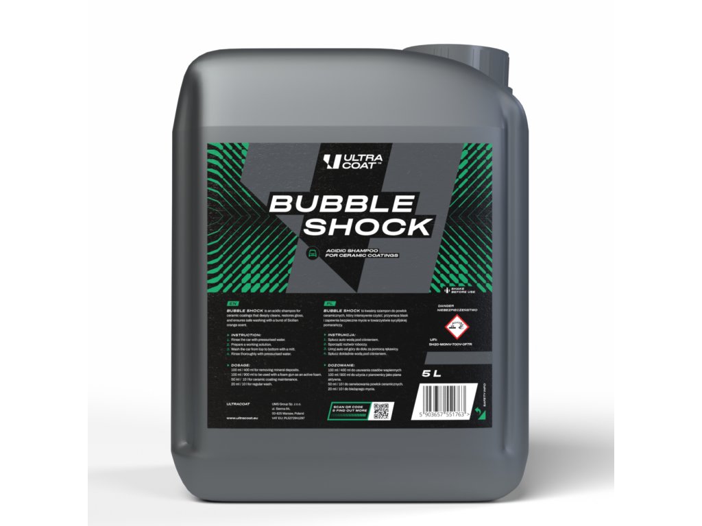 Bubble Shock je šampón pro péči o povrchy chráněné keramickými povlaky.